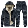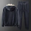 Chándal de lana para hombre, Conjunto de sudadera gruesa con capucha y pantalones, ropa deportiva con cremallera, invierno, novedad