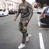 Conjunto de ropa deportiva para hombre, traje informal con estampado de animales en 3D, camisa deportiva de manga larga, conjunto de 2 piezas 6XL, moda de invierno