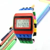 Reloj de pulsera Digital LED para niños y niñas, relojes deportivos electrónicos coloridos Unisex, reloj Lego buildinng