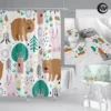 Conjunto de cortina de baño con dibujos animados, juego de alfombrilla de ducha con 12 ganchos, de poliéster, impermeable, para decoración de baño