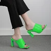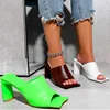 Sandalias de charol para mujer, zapatos de tacón alto, de punta cuadrada, color verde y blanco, 2021