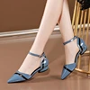 Sapatos azuis zapatos de tacón alto de piel sintética para mujer, calzado informal, de fiesta, para primavera