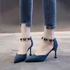 Zapatos de tacón alto con hebilla clásica para mujer, zapatillas femeninas de tacón alto, de estilo moderno, en color negro, para primavera