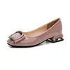 Zapatos de tacón de punta redonda para mujer, calzado de tacón cuadrado, cómodo y elegante, para fiesta, piel sintética rosa