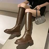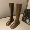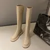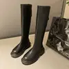 Botas altas ajustadas para mujer, zapatos de plataforma Chelsea de alta gama, punta redonda, con cremallera, informales, Invierno