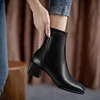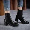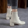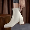 Botas de punta cuadrada para mujer, botines de tacón alto francés, blancos, individuales, tacón medio grueso, 2021