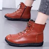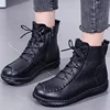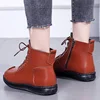 Zapatos planos cómodos para mujer, zapatillas de punta redonda, botines con cordones, botas cortas con cremallera