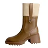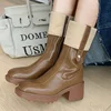 Zapatos de punta redonda para mujer, botas de plataforma con cremallera lateral, de Color sólido, a la moda, cálidos, de media caña