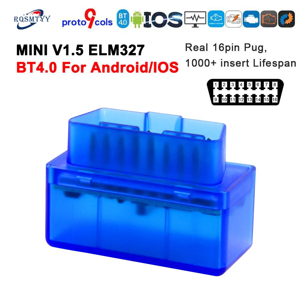 Herramienta de diagnóstico de coche, accesorio Compatible con Android/IOS ELM327 V1.5 OBD2 Bluetooth 4,0, escáner automático, última versión mini ELM 327 obd