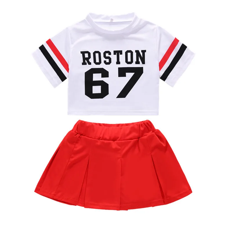 Disfraz de animadora roja para niñas, conjunto de Falda plisada para espectáculo de baile, actuación de escenario, uniforme de equipo escolar de competición para animación