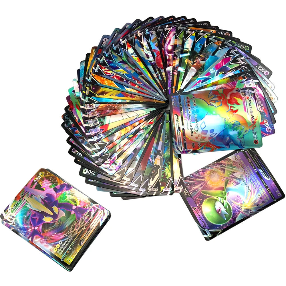 Cartas de Pokémon Vmax TOMY, 60 300 piezas, 300 V MAX 300 GX, versión francesa de batalla para niños, juego Tag, equipo brillante