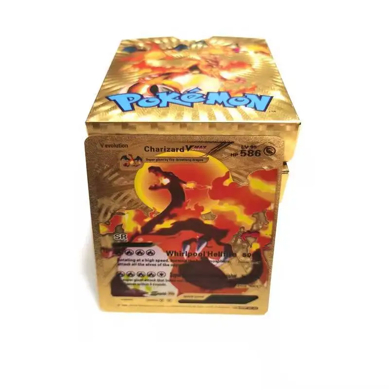 Juego de cartas de Pokémon de 54 piezas, caja de cartas de Metal dorado con letras en inglés y español, cartas metálicas Charizard Vmax Gx, juguete de colección