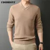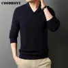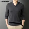 COODRONY suéter de cuello grande con cuello en V para hombre, prenda de punto de lana suave y cálida, informal, a la moda, novedad, invierno, C2009