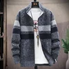 Abrigo de empalme informal para hombre, cárdigan de cuello levantado de punto, chaqueta gruesa de felpa, suéter para hombre, novedad de 2021