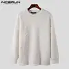 INCERUN Tops de estilo americano para hombre, jersey de Color sólido, de felpa, cómodo, cuello redondo, informal, holgado, S 5XL, novedad de 2021