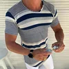Suéter de punto a rayas para hombre, camiseta de lana de manga corta con cuello redondo, jersey de primavera y verano, nueva moda