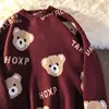 Suéter de oso para hombre y mujer, suéter de color rojo vino, tops para parejas que combinan con todo, para Navidad y Año Nuevo, otoño e invierno, 2021
