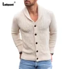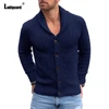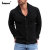 Ladguard suéter de punto para hombre, abrigos cálidos de invierno, ropa de calle masculina, cárdigans de un solo pecho, suéteres sólidos, 2021