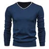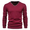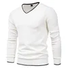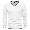 Suéter de algodón puro con cuello en V para hombre, Jersey de punto de Color puro de manga larga, ropa Harajuku juvenil para primavera y otoño