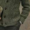 Suéter sencillo informal para hombre, cárdigan de manga larga con bolsillo y cuello en V, Color sólido, otoño e invierno, 2021