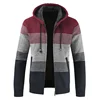 Abrigo con capucha para Hombre, suéter grueso y cálido de lana a rayas, cárdigan con cremallera, novedad, Otoño e Invierno