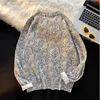 Suéter de cuello redondo con flor de anacardo para hombre, ropa para parejas, tendencia Retro, informal, suelto, Jacquard, de punto, Harajuku