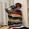 Apanese Jersey a rayas con cuello redondo para hombre, chaqueta holgada de punto, estilo retro, grunge, versión coreana