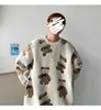 Suéteres de oso de gran tamaño para hombre, ropa masculina holgada, gruesa, con cuello redondo y tejido por ordenador, para Otoño e Invierno