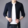 Suéter cárdigan de manga larga para hombre, abrigo de punto liso con cremallera completa, suéter de lana informal, ropa ajustada para primavera y otoño