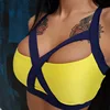 Ropa de entrenamiento para mujer, conjunto de Yoga de 2 piezas de retales, traje de gimnasio elástico de cintura alta, Sujetador deportivo cruzado, pantalones a tope de burbuja 2021