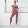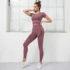 Conjunto de 2 Piezas de Ropa de Entrenamiento para Mujer, Top Corto Deportivo, Sujetador sin Costuras, Leggings