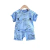 Ropa de dibujos animados para niños y niñas, camiseta de moda, pantalones cortos, conjunto de 2 unids/set, ropa de algodón, ropa deportiva para niños pequeños