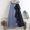 Treutoyeu Falda larga de cintura alta para mujer, faldas asimétricas de estilo Harajuku, A rayas, con volantes