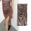 Falda Za para mujer, falda Sexy con luz brillante, con abertura lateral, cintura alta, Vintage, con cremallera trasera, 2021