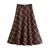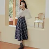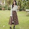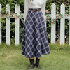 Qiukichonson falda de lana A cuadros para mujer, falda larga hasta la rodilla, de cintura alta, Estilo Vintage literario, para Otoño e Invierno