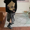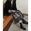 Qiukichonson faldas de lana Vintage para mujer, faldas de cintura alta con abertura lateral, falda a cuadros de longitud media, otoño e invierno, 2021