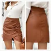Minifalda de piel sintética para mujer, Falda corta plisada estilo coreano, Punk, marrón