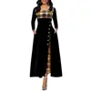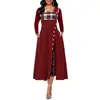 Vestido largo de fiesta con estampado a cuadros para mujer, prenda elegante con botones, Vintage, Irregular, de retazos, para uso diario