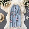 Falda vaquera con estampado Floral para mujer, Falda vaquera larga de cintura alta, Sexy, abertura lateral, para fiesta, primavera y verano, 2022