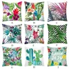 Fundas de almohada de algodón con estampado Floral, conjunto de fundas de almohada con estampado de planta, lomo, hojas verdes de lino