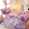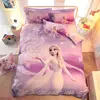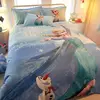 Disney Juego de cama de algodón para niños, funda de edredón de cuatro piezas con dibujos animados de Frozen, princesa Aisha, sencilla y cómoda
