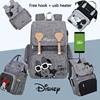 Disney Bolsa de pañales impermeable para bebé, organizador de maternidad para cochecito, mochila de viaje para mamá, ganchos gratis + calentador Usb