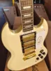SG – guitare électrique blanc crème, corps en acajou, touche en bois de rose, accessoires dorés, en stock, livraison rapide et gratuite