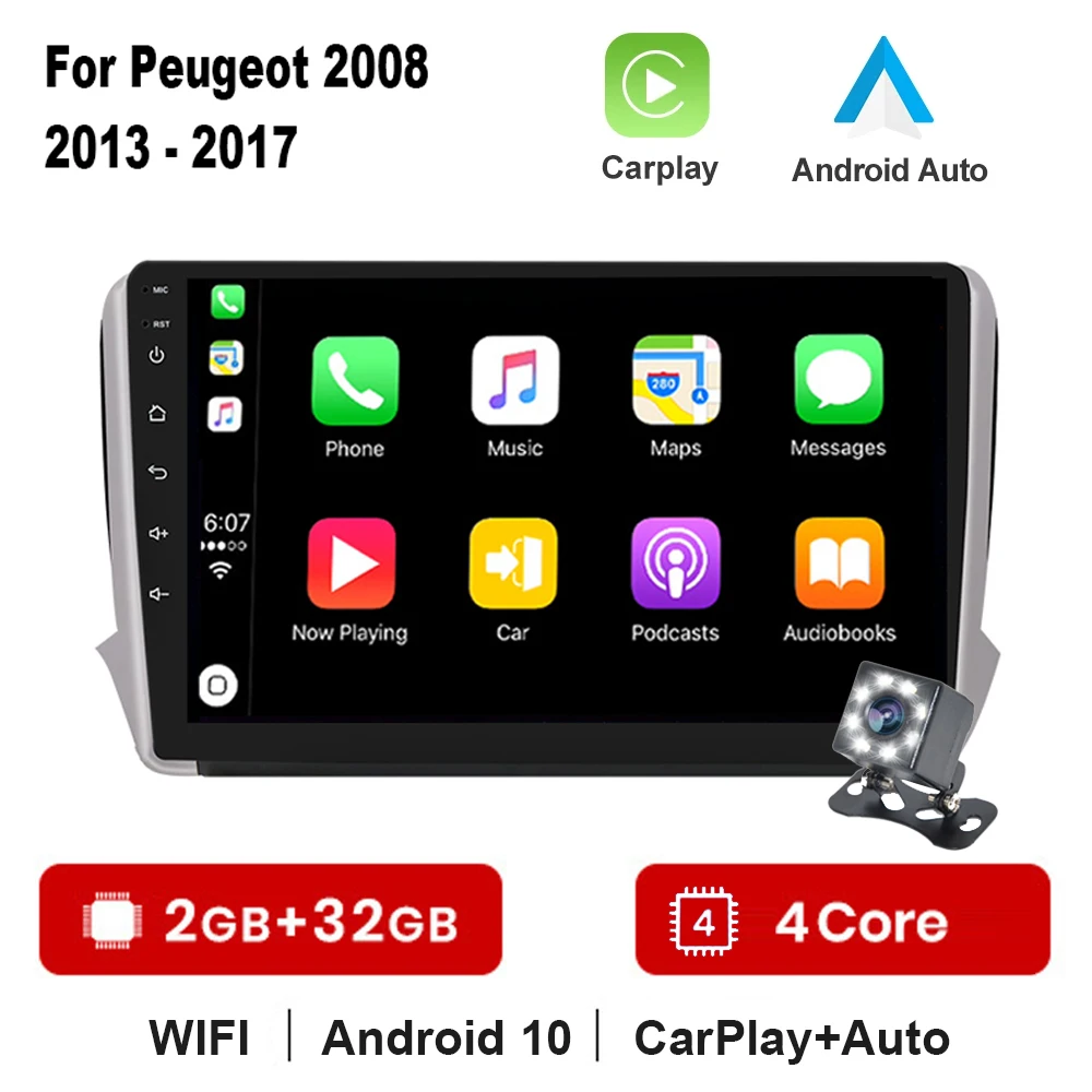 Autoradio Android, Navigation Gps, Lecteur Audio, Unité Centrale Multimédia, Écran 2008 ", Stéréo, 2 Din, pour Voiture Peugeot 208, 2012, 2018, 10.1