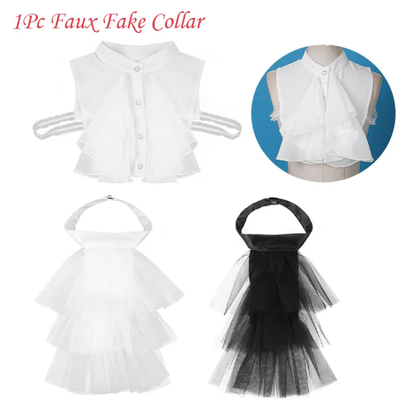 Costume rétro Palace en mousseline de soie à volants, col chemise détachable, demi hauts de couleur unie, faux col décoratif, accessoires de Costume