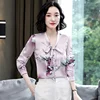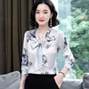 Chemisiers en soie pour femmes, à la mode, imprimé en Satin, chemises à manches longues, col en v, chemisier Floral pour dames, grande taille