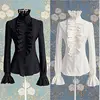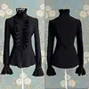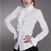 Chemisier à volants manches longues col haut pour femme, couleur unie, style victorien, chemise de bureau, automne