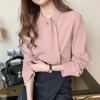 QoerliN – chemisier rose à manches longues pour femme, élégant, ample, couleur unie, Style collégien