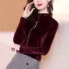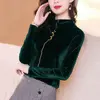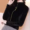 Chemise et chemisier en velours pour femmes, pull féminin, demi col roulé, haut à manches longues, grande taille 4XL, automne hiver 2020