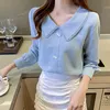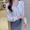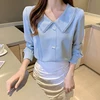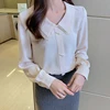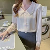 Chemisier coréen en mousseline de soie pour femmes, chemises à manches longues, col Peter Pan, haut en dentelle, taille haute, chemisiers chemise décontracté